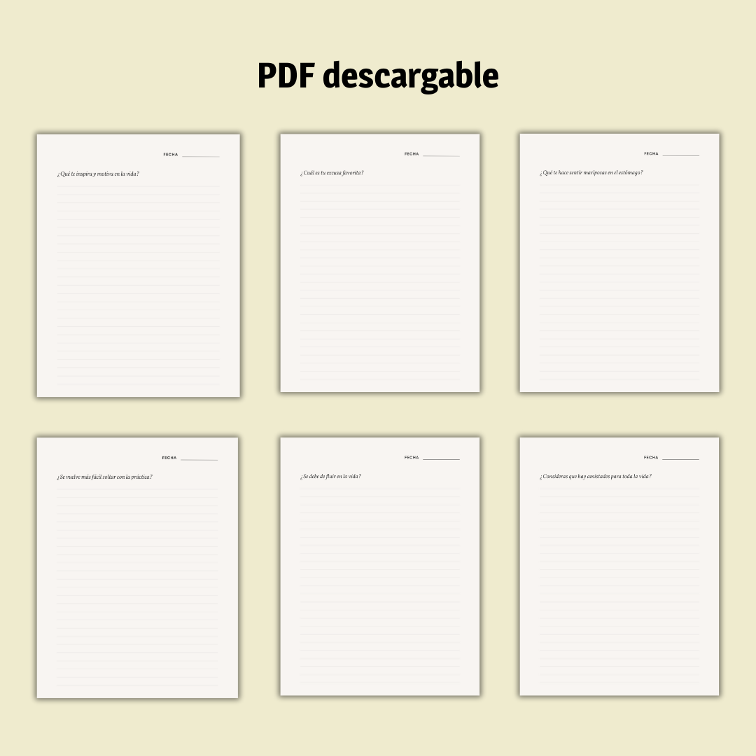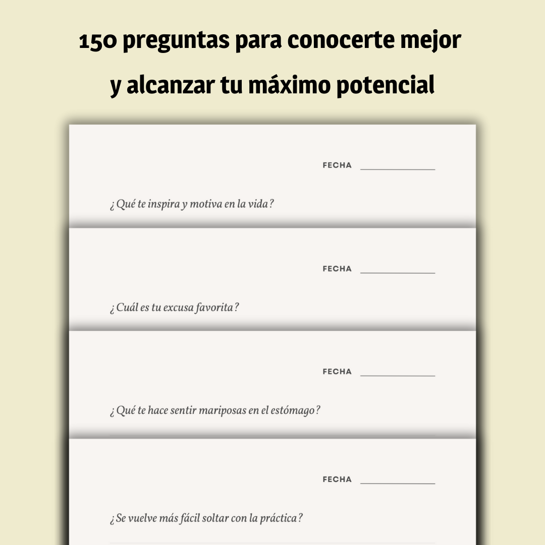 1 PDF descargable con 150 preguntas de autorreflexión. Imprime y empieza a escribir.