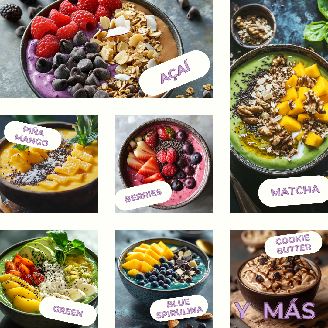 - Nutritivos al Máximo: Cada bowl está cargado de buenos nutrientes para que arranques el día con todo.